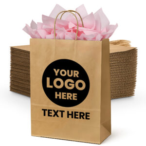 MT Products Custom Printed White Grocery Bags measure 16″ x 6″ x 12″ and are designed for take-out, retail, and food service use. Made from sturdy white paper, these bags feature reinforced handles for secure carrying. Ideal for restaurants, grocery stores, bakeries, and events, you can be custom printed with logos, branding, or messages for a professional presentation. Suitable for hot or cold items, retail goods, and packaged foods.